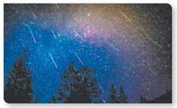 Метеори та метеорити. Окрім астероїдів і комет у Сонячній системі є велика кількість тіл порівняно невеликого розміру (до 50 м), які називають метеороїдами. Вони рухаються в міжпланетному просторі й час від часу проникають в атмосферу Землі. Частки космічного пилу ніколи не долітають до поверхні Землі, бо вони згорають і випаровуються в атмосфері на висоті кількох десятків кілометрів. Світлове явище, яке спостерігається під час згорання метеороїда в атмосфері Землі, називають метеором. Інколи спостерігається незвичайне небесне явище «зоряний» дощ (мал. 207). Це явище пояснюється тим, що від комети залишаються тверді силікатні пилинки, які продовжують рух по орбіті та перетворюються в метеороїдні потоки. Коли Земля перетинає орбіту такого метеороїдного потоку, на небі можна побачити тисячі метеорів.