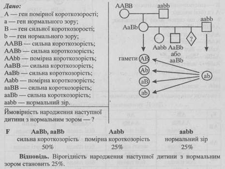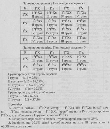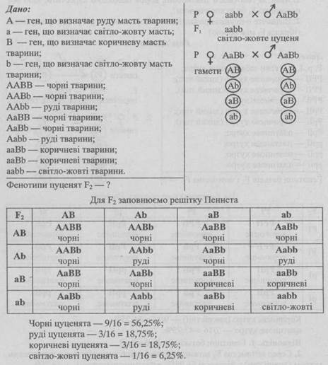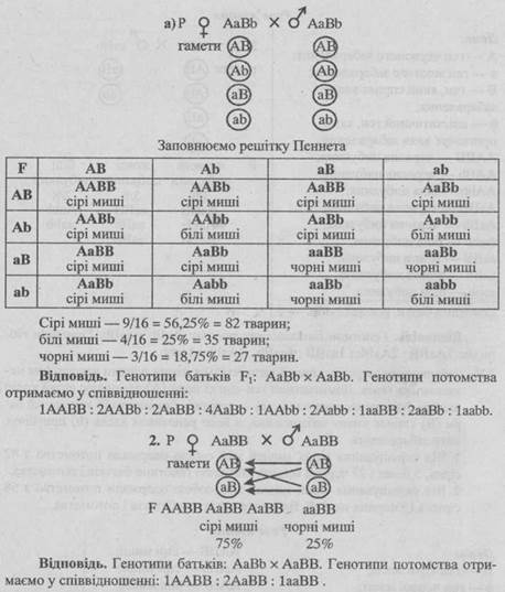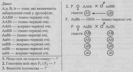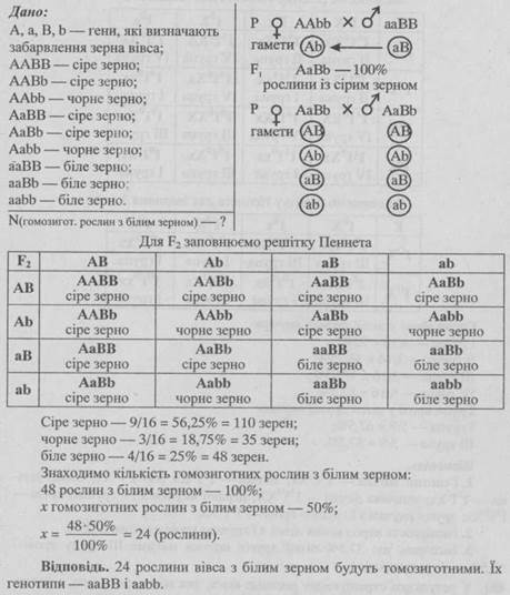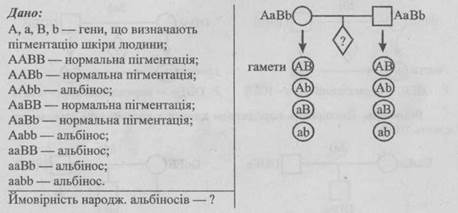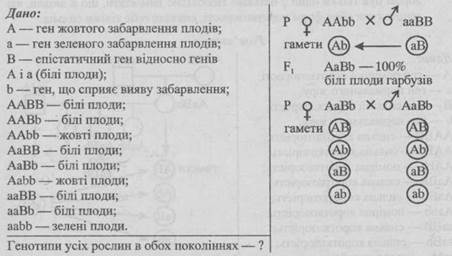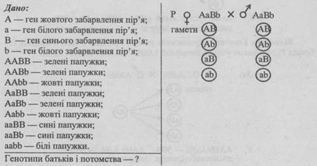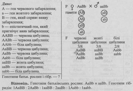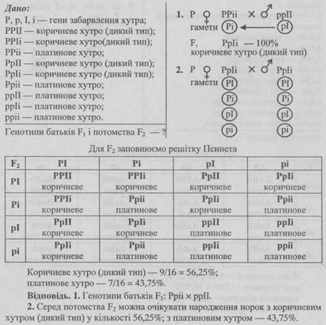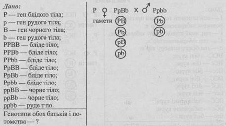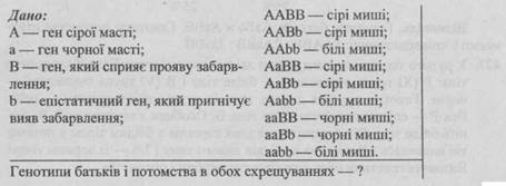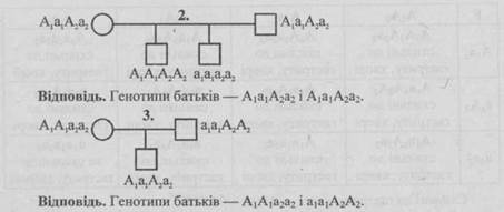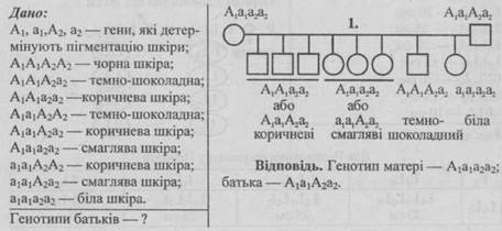 - 1. Від шлюбу чоловіка, що має коричневу шкіру зі смаглявою жінкою народилось восьмеро дітей, з яких 3 мали коричневу шкіру, 3 — смагляву, 1 — темно-шоколадну і 1 — білу. Визначте генотипи батьків.