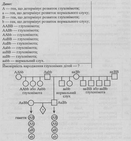 - 3. У шлюбі здорових людей з’явилась глухоніма дитина. Чому це сталося? Запишіть генотипи батьків і дітей.