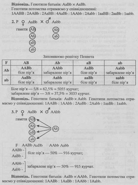 - 3. Яким буде потомство від схрещування гібрида АаВb із чистопородними білими курми, які мають генотип Aabb?
