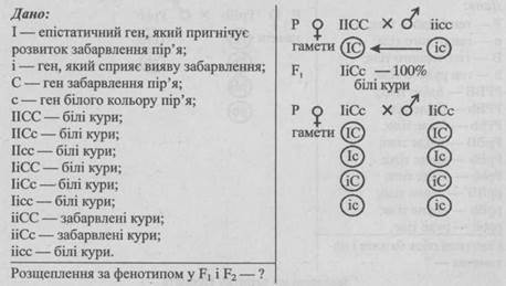 - 2. Який колір пір’я матимуть гібриди у F2 від схрещування особин з F1?