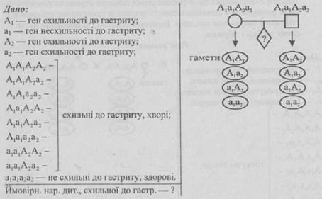 Відповідь. Вірогідність народження в цій сім’ї дитини, схильної до гастриту, становить 93,75%.
