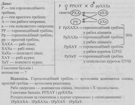 - 1. За генотипом серед потомства F1 отримаємо розщеплення у співвідношенні 1АаХВХb : 1AaXBY; а за статтю — 1 самка : 1 самець. За фенотипом всі самки будуть червоноокими з нормальними крилами; а самці червоноокими з нормальними крилами.